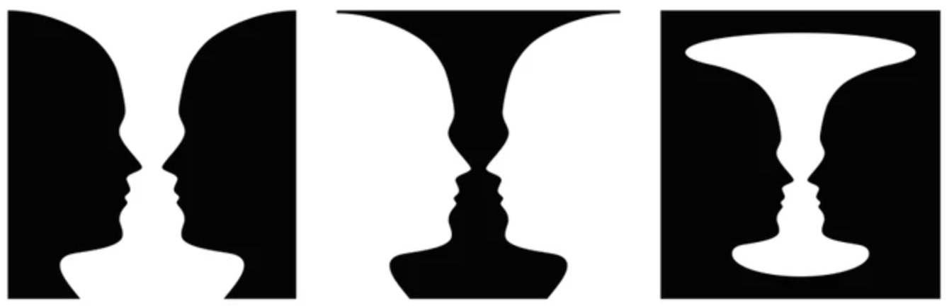 What it is: Your visual system separates a scene into a figure to attend to and a ground to ignore. The figure is perceived as in front, shaped, and meaningful. The ground recedes.
