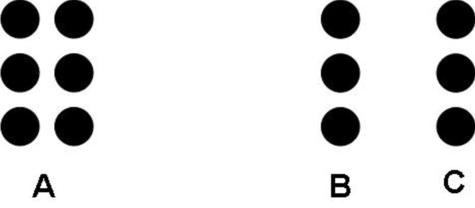 How the brain decides: A closed, high-contrast boundary acts like a container; anything inside is “one group,” even if the things inside the container are spaced apart. If the boundary is faint or open, the effect weakens and proximity starts to dominate.